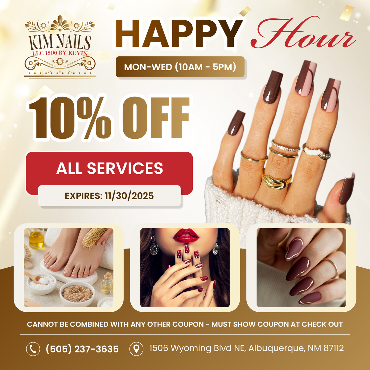Welcome you to Kim Nails LLC by Kevin, we are pleased to offer a full service Salon for our valued customers. We always assure that the salon is totally clean and the tools are sanitized clearly for each use. You are freely to enjoy the relax moments with luxurious and elegant space, escaping from all the life’s pressure and stress to make the most of wonderful time.